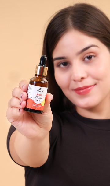 Brighten and even out your skin tone with our 5% Vita-C & 10% Niacinamide Serum. • 5 % Vita-C + 10% Niacinamide • Removes dark spots & hyperpigmentation • Repairs uneven skin tone