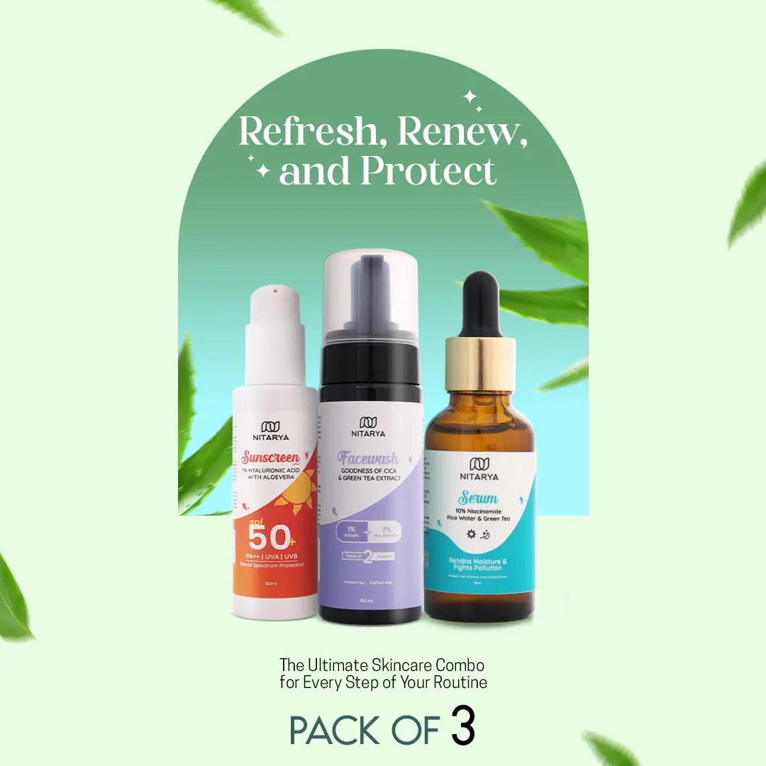 1% Hyaluronic Acid Sunscreen & 10% Niacinamide Face Serum & 1% Salicylic Acid Face Wash