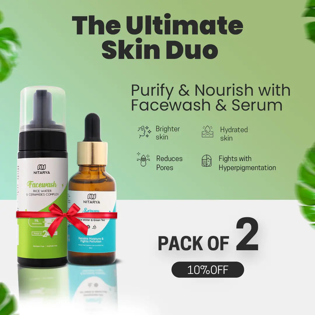 Brighten and clarify your skin with our 10% Niacinamide Serum and Rice Water.