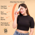 Broad Spectrum Protection: Defend your skin from both UVA and UVB rays with SPF 50, preventing sunburn and premature aging.