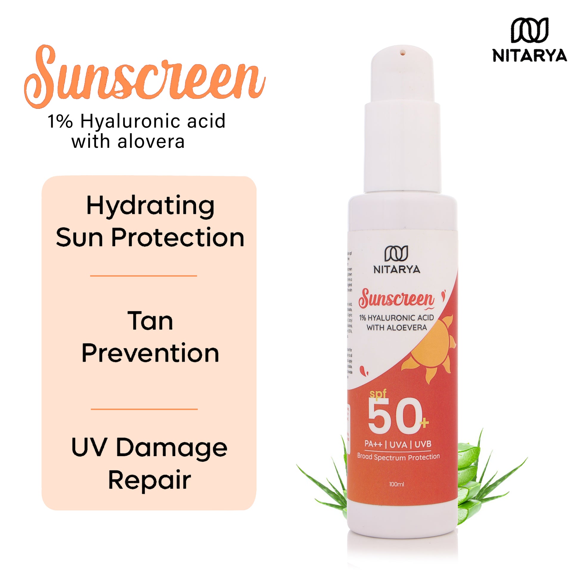 • 50+ SPF + 1% Hyaluronic acid